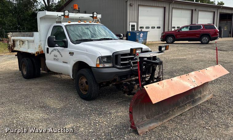 2004 Ford F350 Super Duty dump bed pickup truck 2004 Ford F350 Super Duty dump bed pickup truck Miles: 137,492 on odometer VIN: 1FDWF37P04EC01544 Engine Displacement: 6.0L V8 DOHC Cylinders: 8 Fuel type: Diesel Transmission Automatic Four wheel drive Interior AC, Heat Cruise control Features Bed Dump bed Rugby Length: 9' Width: 96" Height: 20" Western pro plus plow Width: 9' Tires Size: 235/85R16 Notes Non-operational hydraulic valve for spreader Dump bed frame rust issues Fuel tank issues, leaks Fuel tank not attached View repairs Illinois title Seller is a government entity who will be assigning and distributing the title. Please contact the seller for distribution questions. Hennepin Township Road District Hennepin, IL 61327