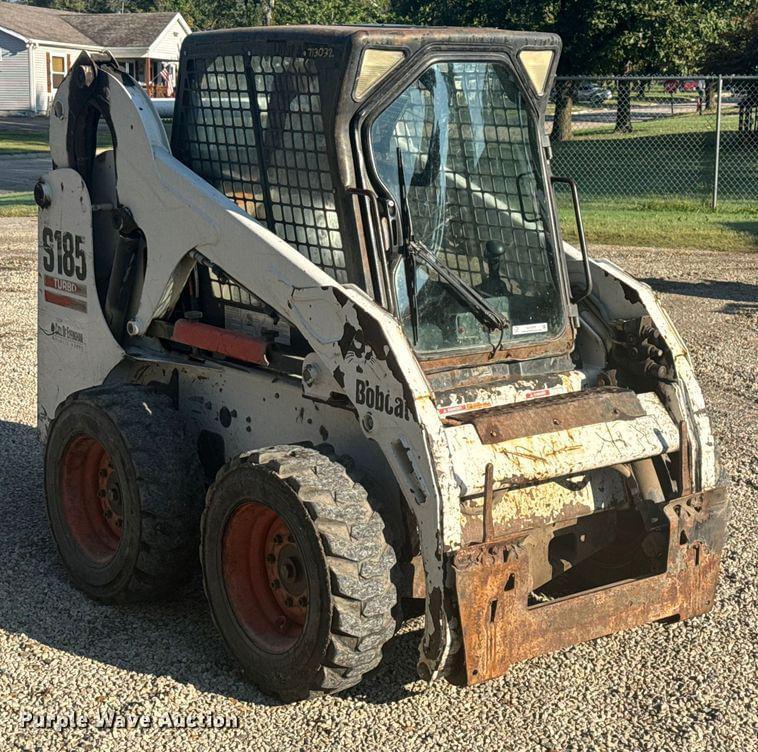 2005 Bobcat S185 skid steer loader Hours: 2,440 on meter Serial: 525022811 Engine Kubota V2003 Displacement: 2.0L Cylinders: 4 Fuel type: Diesel Transmission Hydrostatic Operators station Enclosed cab Bucket control: Hand, Foot Features Auxiliary hydraulics Quick coupler: Manual Tires Size: 10-16.5 Notes Left window damaged, cracked City of Effingham, KS Effingham, KS 66023