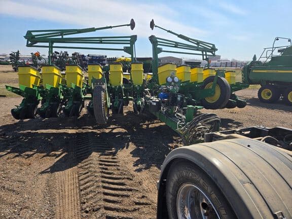 Planter - 24 Row Planting Width - 22 Inch Row Spacing - Flex Fold Frame - Hydraulic Wing Fold Frame - Vacuum Planter Units - Drawbar Hookup - Tru Vee Openers - MaxEmerge Units - 1.9 Bushel Capacity per Unit - Chain Drive - Heavy Duty Wing Wheels - eSet Precision Planting Retrofit - 20/20 Precision Planting Retrofit - Liquid Fertilizer Compatible - Electric Fertilizer Drive - Markers - Standard Downforce - Regular Parallel Arms - Corn Seed Plates - Row Cleaners Rows: 24, Row Spacing: 22 in, Frame: Flex Fold, Metering System: Vacuum