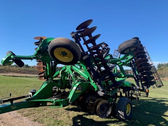 2015 John Deere 2623 disk. 23' 7" working width. 9" spacing. Hydraulic round bar rolling baskets. Single point depth control. Wing stabilizer wheels. 1 owner, low acre, local trade. Size: 23 ft, Kind: 3-Section Folding, Spacing: 9"