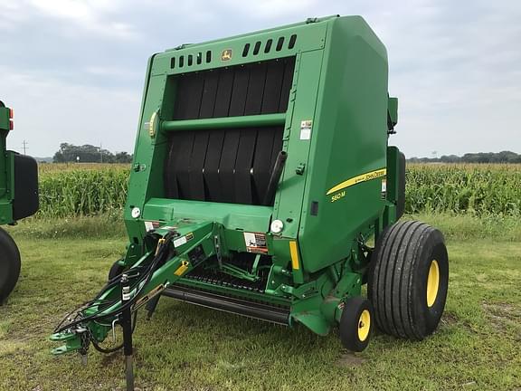 2018 JOHN DEERE 560M, TWINE/WRAP, PUSHBAR, MEGAWIDE W/HYD PICKUP, 21.5-16.1 TIRES Pickup: Mega Wide, Wrapping: Both Twine and Surface Wrap, PTO: 1000, Width of Bale: 5 Feet, Precut Knives: No, 21.5l-16.1 10 ply tires , MegaWidePlus Pickup, Bale push bar