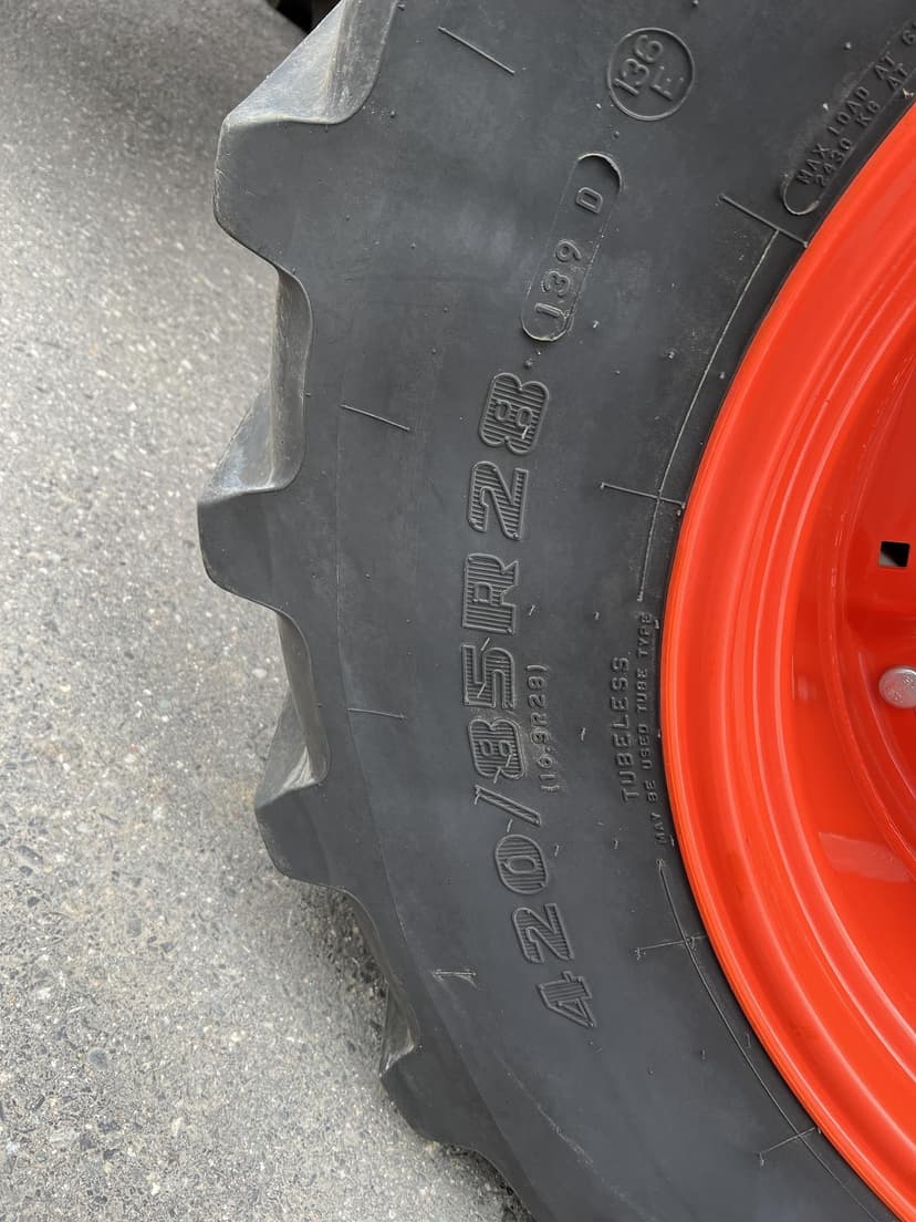 2021 KUBOTA M7-152 DELUXE Row Crop Tractor - Kubota turbocharged intercoooled diesel engine, power shift transmission six power shift gears in five synchronized ranges with shuttle, LA2605 loader with quick attach bucket, bucket level indicator, 3rd function, grill guard, 420/85R28 front tires, 480/80R42 rear tires, rear 3Pt., rear PTO, three rear remotes, cab, heat and air conditioning.