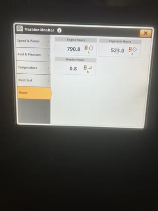 JOHN DEERE S780 STS TRACK COMBINE, 2022, with 2 speed POWER REAR WHEEL DRIVE, 13.5 LITER, 473HP, 523hp during unloading power boost, JDLink MTG, 110V coolant heater, Premium cab, E/H header and separator controls, premium header controls, 3 position header height resume, dial-a-speed, leather heated air suspension seat, leather buddy seat, HVAC, Climatrac automatic cab temp controls, AM/FM XM ready radio, refrigerator, camera ready, machine sync with antenna, business radio ready, 10" color command center arm rest display w/ harvest monitor, 4600 processor, NO OTHER MONITORS, CommandCenter automation 4.0 activations (auto-trac steering, RowSense, Section Control, Machine Sync, & AutoPath), REQUIRES AMS POSITION RECIVER WHICH IS "NOT" INCLUDED, combine advisor package, premium LED lighting and extremity lights, ActiveYield plus moisture & yield sensors, active terrain adjustments, touch set, interactive combine adjustments, VisionTrak & engine speed management, ProDrive transmission w/Harvest smart, contour master command touch 5 speed feeder house w/reverser, 3.5" lift cylinders, dual tilt cylinders, fore & aft tilt, Dyna-flo plus general purpose touch set chaffer and sieve, Tristream extended wear rotor with Kondex Revolution extended wear coarse grains round bar concaves, 400 bu grain tank, power folding tank covers, extended wear grain handling system, 26' high capacity extended wear unloading auger, grain tank mirror, clean grain auger and fan bottom shields, wide sp