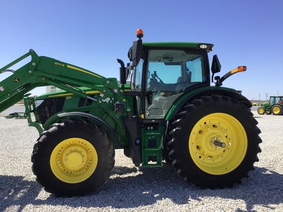 2023 JOHN DEERE 6R 155 WITH JD 660R LOADER/BUCKET/GRAPPLE *MFWD *IVT (40K) *40 GPM HYD PUMP *3 ELECTRONIC SCVS *540/1000 PTO *480/80R46 REARS *420/85R30 FRONTS *FRONT FENDERS *REAR FENDER EXTENSIONS *COLD START PKG *FUEL HEATER SYSTEM *REAR WEIGHTS *PREMIUM CAB/SEAT/RADIO/LIGHTS *ELECTRIC ADJUST MIRRORS *PANORAMA DOORS *COMMANDARM *HEATED REAR WINDOW *G5 COMMANDCENTER W/AUTOTRAC *JD LINK MODEM *POWERTRAIN EXTENDED WARRANTY 1500 HOURS OR FEBRUARY 6, 2027 Configuration: Standard, Cab: Cab, Transmission: IVT, Guidance-ready: Yes, Guidance Display: Yes, Front Axle: MFWD w/ Suspension, Tire Width: Mid, Loader: Yes, Options: Loader Ready, WILL HAVE 660R LOADER WITH BUCKET AND GRAPPLE