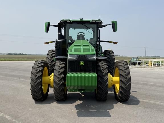 The 2023 John Deere 8R 370 defines high-efficiency row crop power, offering exceptional performance and reliability essential for modern farming operations. Engineered for peak productivity, this powerful machine features the highly sought-after IVT Transmission for seamless speed changes and maximum power transfer, coupled with MFWD w/ Suspension to ensure superior comfort and traction across varied terrain. Precision agriculture is integrated directly with the included Cab and full Guidance-ready capabilities, complete with the necessary Display to optimize every pass. Running on durable Rear Duals for stability and reduced compaction, this low-hour 8R 370 Row Crop Tractor is a confident investment, meticulously inspected and ready to deliver immediate value and high-horsepower performance from Van Wall Equipment. Cab: Cab, Front Axle: MFWD w/ Suspension, Transmission: IVT, Guidance-ready: Yes, Guidance Display: Yes, Rear PTO: 1000, Rear Tires: Duals, Tire Width: Mid