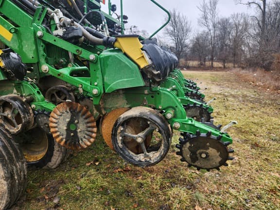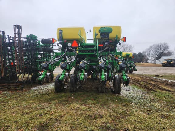 JOHN DEERE 1795 CCS PLANTER, 2024, 31 row, 15" row spacing, central commodity system, 2-65 bushel seed tanks, EXACTEMERGE electric drive with PLANTER POWER hydraulic driven generator, connect mobile ready, JDLink MTG, ExactEmerge package with curve compensation and vacuum automation, vacuum seed meter, Electric drive EXACTEMERGE meter system, mini seed hoppers, tru-vee openers with single walking spoked gauge wheels, steel scrapers, Yetter twister spiked closing wheels, SeedStar 4 HP monitor system with settings manager, mobile row unit runoff & easy fold, REQUIRES JD GEN4-4600 COMMAND CENTER OR 4640 DISPLAY WHICH IS "NOT" INCLUDED, Starfire receiver implement mast & harnessing (NO RECEIVER), premium lighting package, regular parallel arms, independent row unit hydraulic down force, unit mounted .63"-25flute no-till coulters, brush belt seed delivery, corn & soybean seed meter bowls, 3 section flex frame, 15 degrees up/down, frame weight distribution, LESS markers, Cat 3 two point swivel hitch, 4-VF295/75R-22.5 tires on main frame, 4-VF245/70R19.5 wing tires. Rows: 16/31, Row Spacing: 15 in, Frame: Wing Fold, Metering System: Exact Emerge, Hopper: Central Fill System, Row Command: Yes, Fertilizer: No Fertilizer, Options: Electric Drive