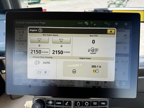 JOHN DEERE 9RT 490 ROW CROP TRACK TRACTOR, 2024, 490 hp, JD 13.6 liter, 6 cylinder, diesel engine, JDLink MTG, Autonomy Prep Package, 330 amp alternator, 18F/6R e18 powershift transmission with efficiency manager, right hand bump to shift controls, back-up alarm, Premium CommandView III cab, Premium comfort & convenience package, cloth air suspension seat, cloth buddy seat, auto temp control, premium touch screen AM/FM radio, refrigerator, business band radio ready, dual electric adjust rear view mirrors, camera ready, premium LED lighting package, LED beacon lights, dual beam radar sensor, dual G5 Plus CommandCenter 12.8" display with permanent licenses for AutoTrac steering, Section Control, Data Sync, Over Air updates & Remote Display Access, renewable SF-RTK 1 year license for Implement Guidance, Turn Automation, AutoPath, Data Share & Machine Sync, includes integrated Starfire SF-1 global position receiver (accuracy subscriptions required), rear implement ethernet, 110 GPM dual hydraulic pump, 6 rear remote hydraulic valves with ISO couplers and high pressure relief levers, auxiliary hydraulic connectors (power beyond, motor return, case drain & load sense couplers), independent 1000 rpm (1 3/4") rear PTO, less 3 point hitch, Cat5 HD wide swing roller drawbar (2.75" pin), 2,780# front track idler weights, polyurethane mid rollers, 30" Camso AG 6500 tracks, 106" track spacing, 136" outside to outside, FULL JD FACTORY WARRANTY UNTIL 08-06-2026 OR 2000 HOURS. Track Siz