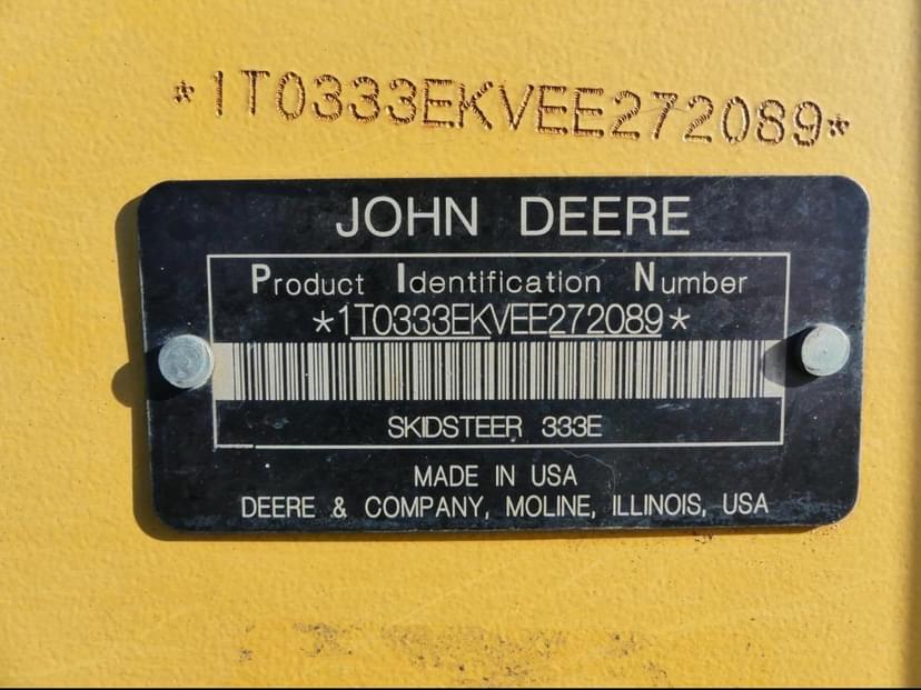 DEERE 333E Cab 2 Speed Rubber Track Skid Steer VIN / Serial Number: 1T0333EKVEE272089 Hours (Read): 3122